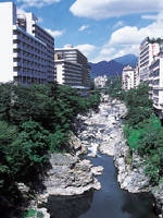 怒川の清流沿いに広がる一大温泉観光地。