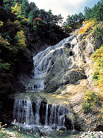 手取峡谷の一番の見どころ。落差が32m.ある滝を、水しぶきが飛んでくるほど近くで見ることができる。周辺は遊歩道が整備されている。