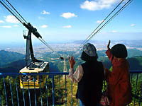 昭和62(1987)年に開通したロープウェイ。約2600mを毎秒10mで進み、天気のいい日には瀬戸大橋や本州が遠望できる。山頂には四国霊場第66番札所の雲辺寺などがある。
