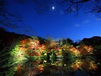 11月の声を聞くと、断崖が切り立つ御船山(標高210m)を借景に、イロハカエデやヤマモミジ、オオモミジ、イタヤカエデなど、多種多様な紅葉狩りを楽しめる。特に「紅葉まつり」は、同園の年間来場者数約10万人のうち、5万人以上が訪れる人気行事で、毎年多くの人で賑わう。絶好の撮影ポイントも多い。